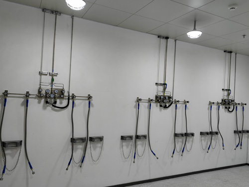 8.氣瓶間內的實驗室氣體設備與工作負壓調試器期間分為SS316L負壓金屬質軟水管聯系無滲透到。負壓軟水管為被動式軟水管,以以確保聯系的非常便捷性。并自導防御鋼纜,預防毀滅性情況下,設備閥傷害等干涉現象創造的負壓“抽鞭”事故案例。工作負壓調試器與管線的聯系行為為雙環卡套。