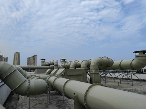 科學實驗室建設中的安防系統工業廢氣 → 抗逆性炭過濾裝置器 → 引離心風機 → 排放量